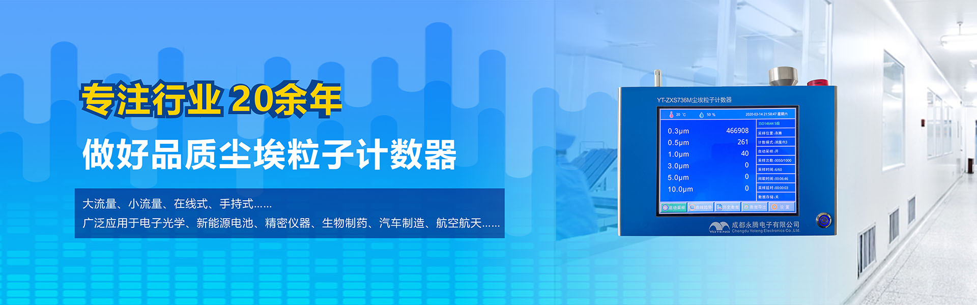 成都永騰電子有限公司位于成都市國(guó)家經(jīng)濟(jì)技術(shù)開發(fā)區(qū),是一家專業(yè)從事環(huán)境空氣監(jiān)測(cè)儀器研發(fā)、生產(chǎn)、銷售于一體的高科技企業(yè)。產(chǎn)品涵蓋空氣檢測(cè)儀器、潔凈間在線塵埃粒子計(jì)數(shù)器監(jiān)測(cè)系統(tǒng)、大氣顆粒物監(jiān)測(cè)微站系統(tǒng)、電化學(xué)分析儀器、實(shí)驗(yàn)室設(shè)備等產(chǎn)品。